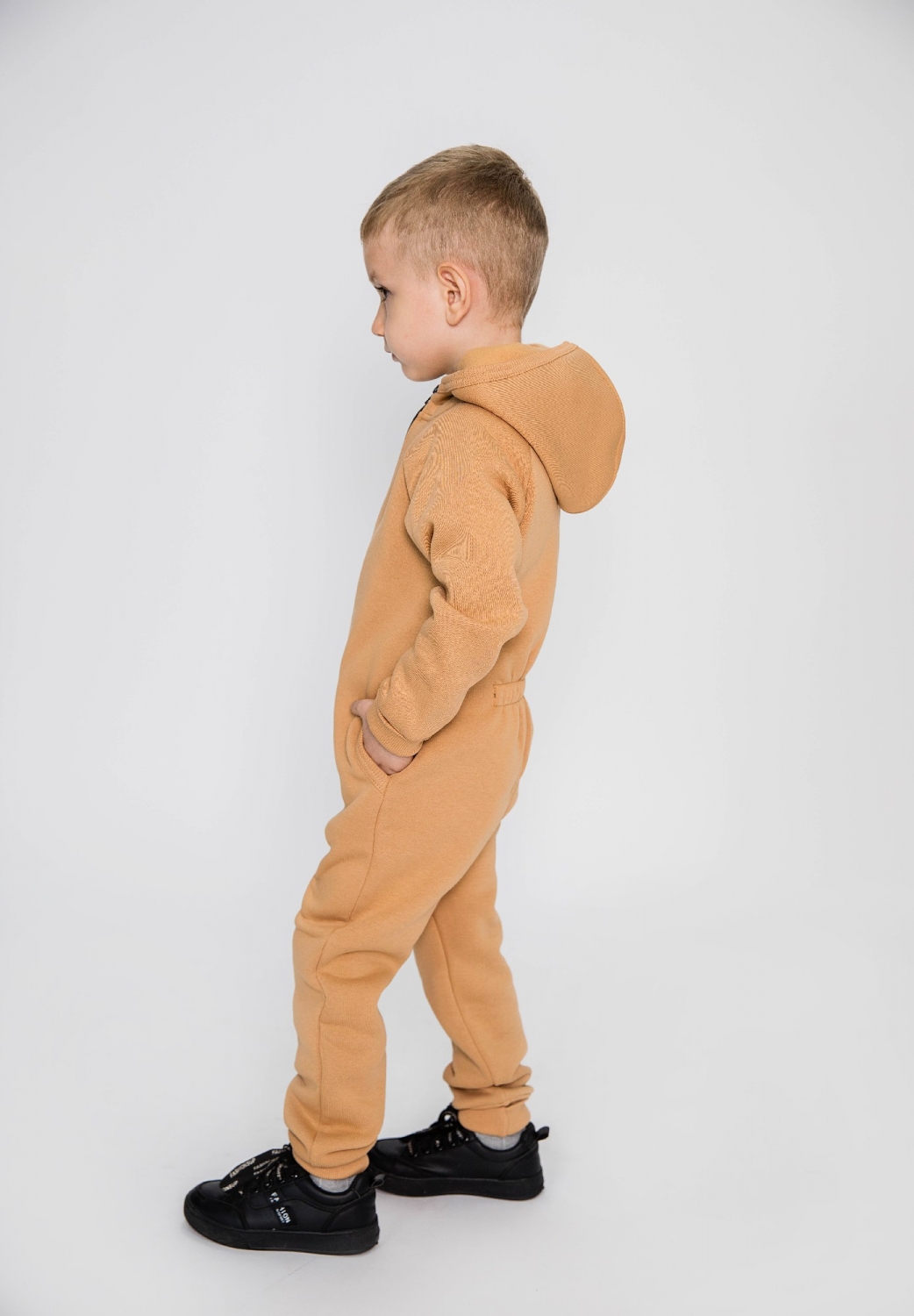 Купить оптом 318-ТК. Комбинезон на молнии с капюшоном, темно кофейный, хлопок 65%, 35% ПЭ, 3 нитка толстовка (начёс) 86,92,98,104 в Оренбурге