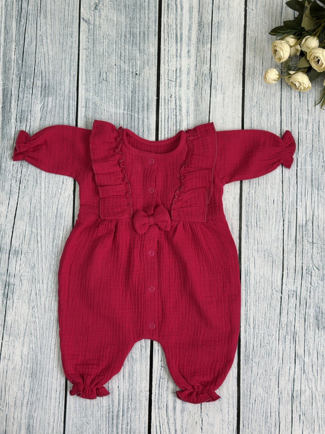 337-Ф. Комбинезон с бантом для девочки из муслина, хлопок 100%, размеры 56,62,68, фуксия
