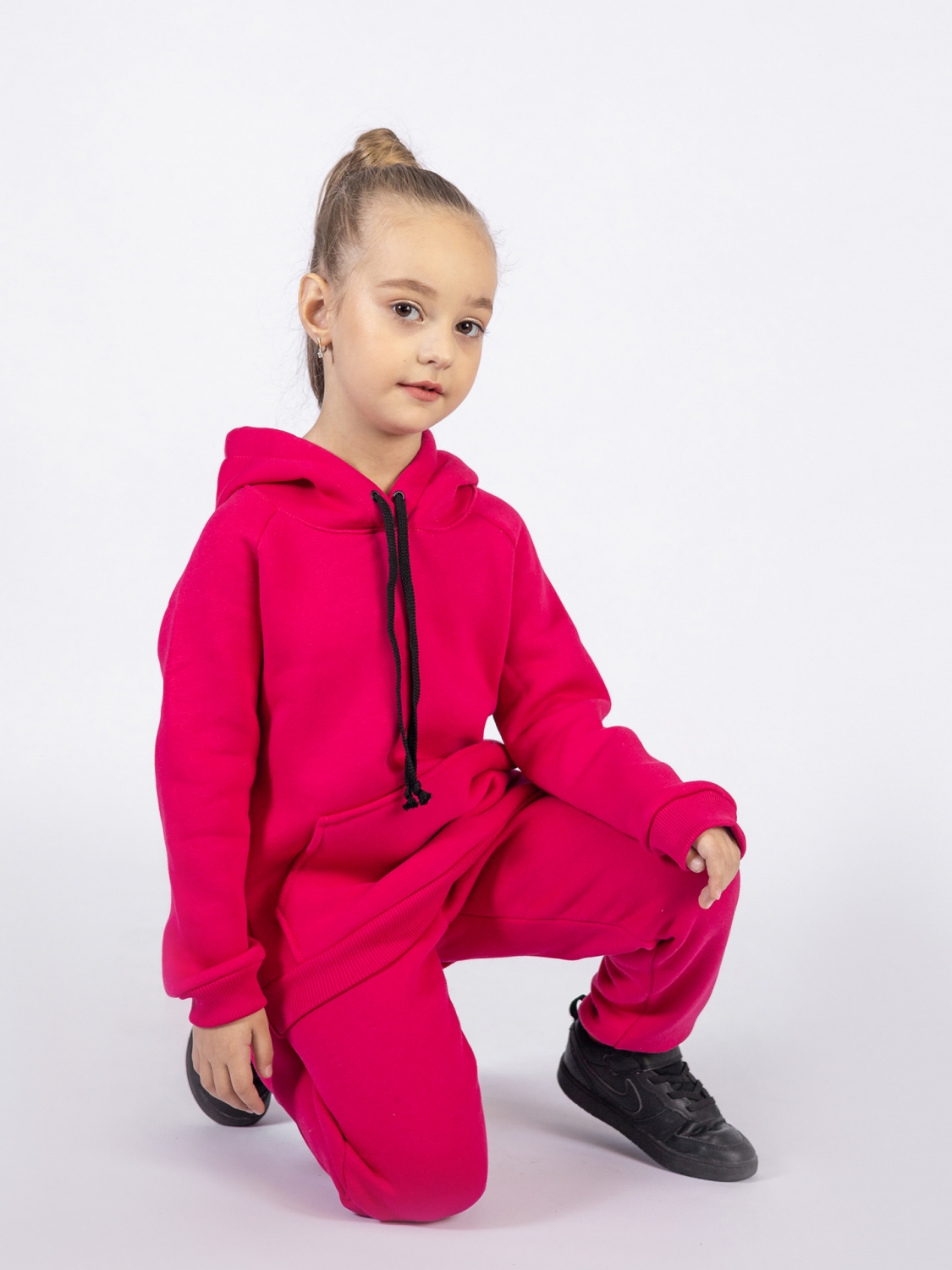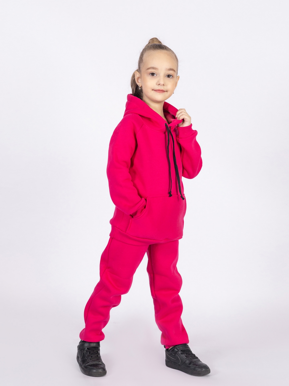 296-Ф. Свитшот с капюшоном + Штаны, хлопок 65%, 35% ПЭ, 3-х нитка (начес) фуксия 146,152,158
