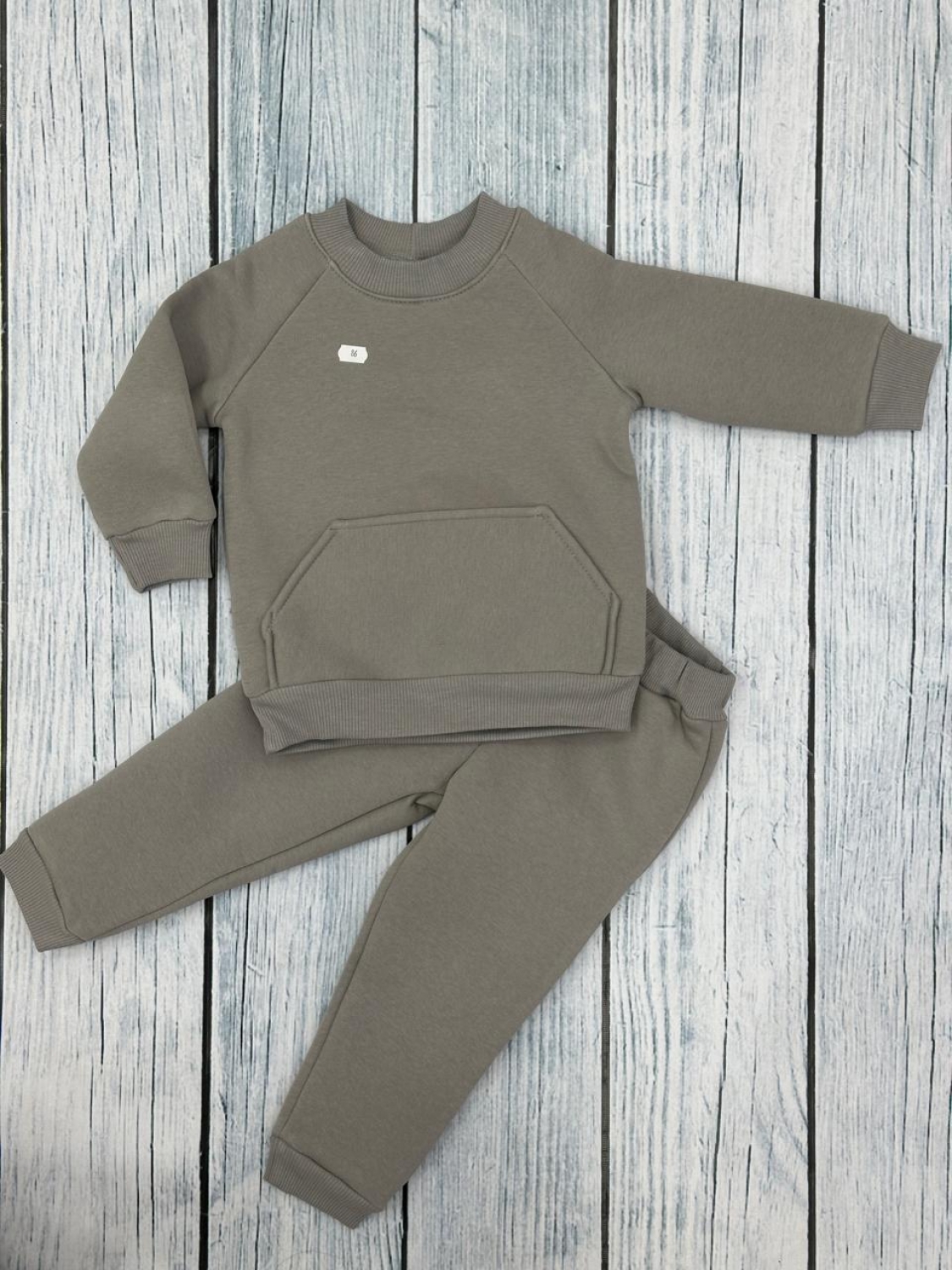 Купить оптом 297-СЕР. Свитшот + Штаны, хлопок 65%, 35% ПЭ, 3-х нитка (начес) серый ,80,86,92,98,104 в Оренбурге